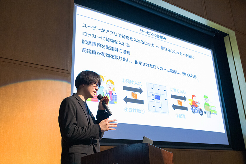 神奈川県知事へのプレゼンテーションの機会は応募前から魅⼒的に感じていました。神奈川県知事へのプレゼンテーションでは私の考えているサービスが荷物の⾯倒臭さを解消できる唯⼀の⼿段だと伝えたいです。荷物の預かりサービスや配送サービスはありますが、荷物のラストワンマイルの課題は私のサービスでしか解消できないと考えています。