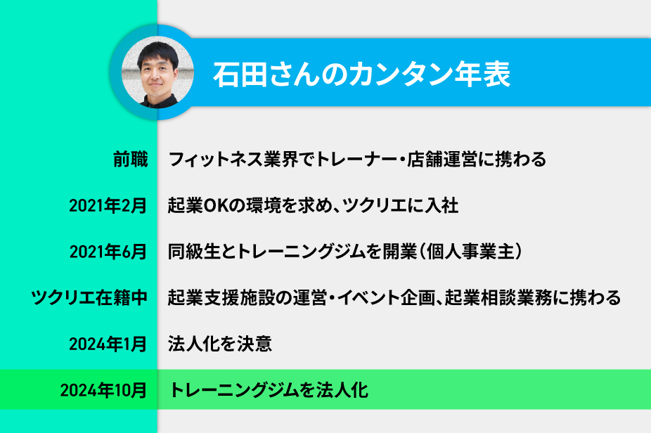 石田さん「トレーニングジムをやりたい、という気持ちはずっとありました。でも当時の会社は副業禁止で。このままじゃ起業できないな、と思ったんです」