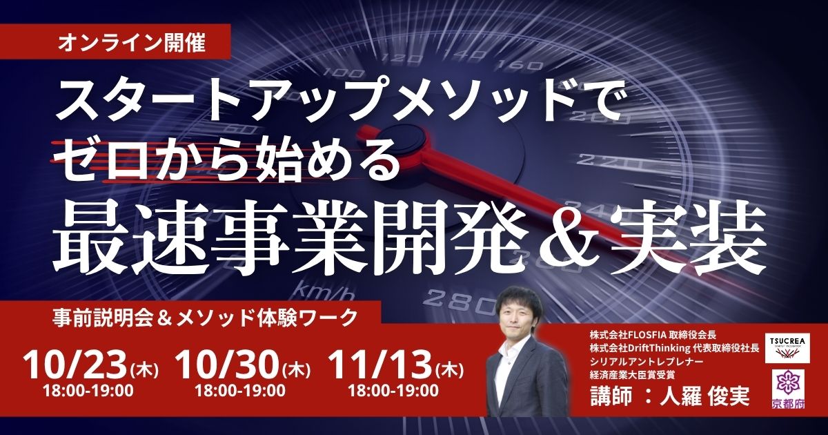 本セミナーでは、FLOSFIAでの起業経験や複数のスタートアップ支援を手がけてきた講師・人羅俊実氏が、「成功するフレームワーク」を再現性ある形で紹介します。