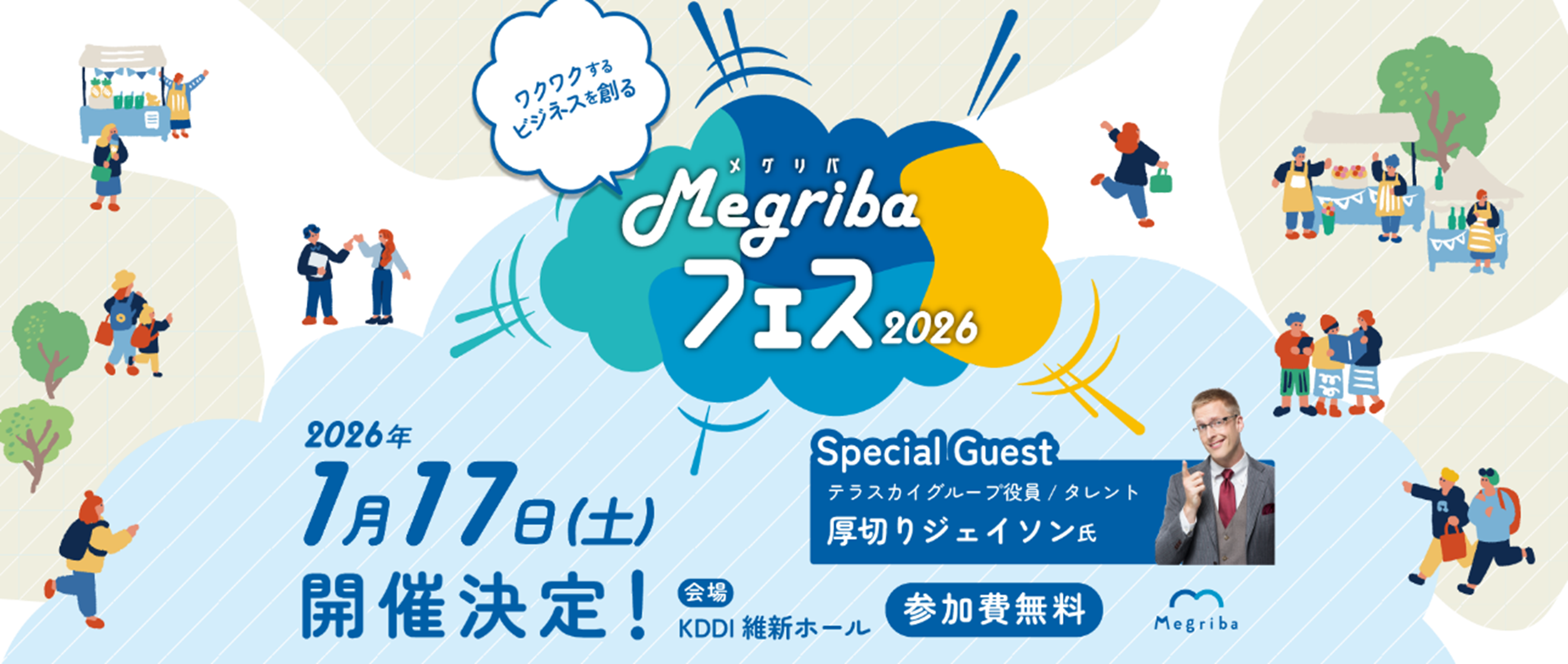 弊社が山口市から運営受託している産業交流スペース「Megriba(メグリバ)」(山口県山口市小郡)では、2026年1月17日(土)に年に一度のスペシャルイベント「Megribaフェス2026(以下、本イベント)」を開催いたします。